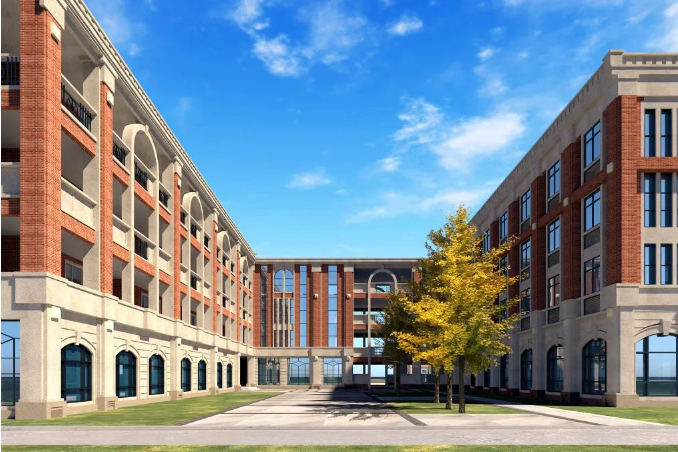 项目概况丨项目总建筑面积约10万平方米,总投资约8亿元,共包含两栋单体建筑,分别为实训楼和学生宿舍综合楼,建设内容包括学生公寓、食堂、实训室、办公室、实验室、阶梯教室、普通教室等,于2023年6月6日竣工验收。